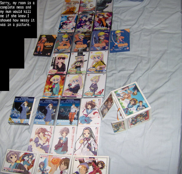 I have been dignosed with Autism at the age of 4 and I am an anime fan. But this, this is rediculus. I mean, HOLY SHIT!!! I never got anything close to this from my folks. I only got 1 volume of Dragon ball, 1 of Rurouni Kenshin and 3 seasons of Bleach (and a copy of the kenshin novel too). And I bought them all with MY OWN MONEY!! XP If my parents ever got me anything like this when I was a kid, my eyes would have glazed over and I would have been higher the the FUCKING HUBBLE!!! Comeing from a guy who HAS Autism and has 2 BROTHERS wit the same thing, I have to say this for my own sake: He’s crazy. O_O